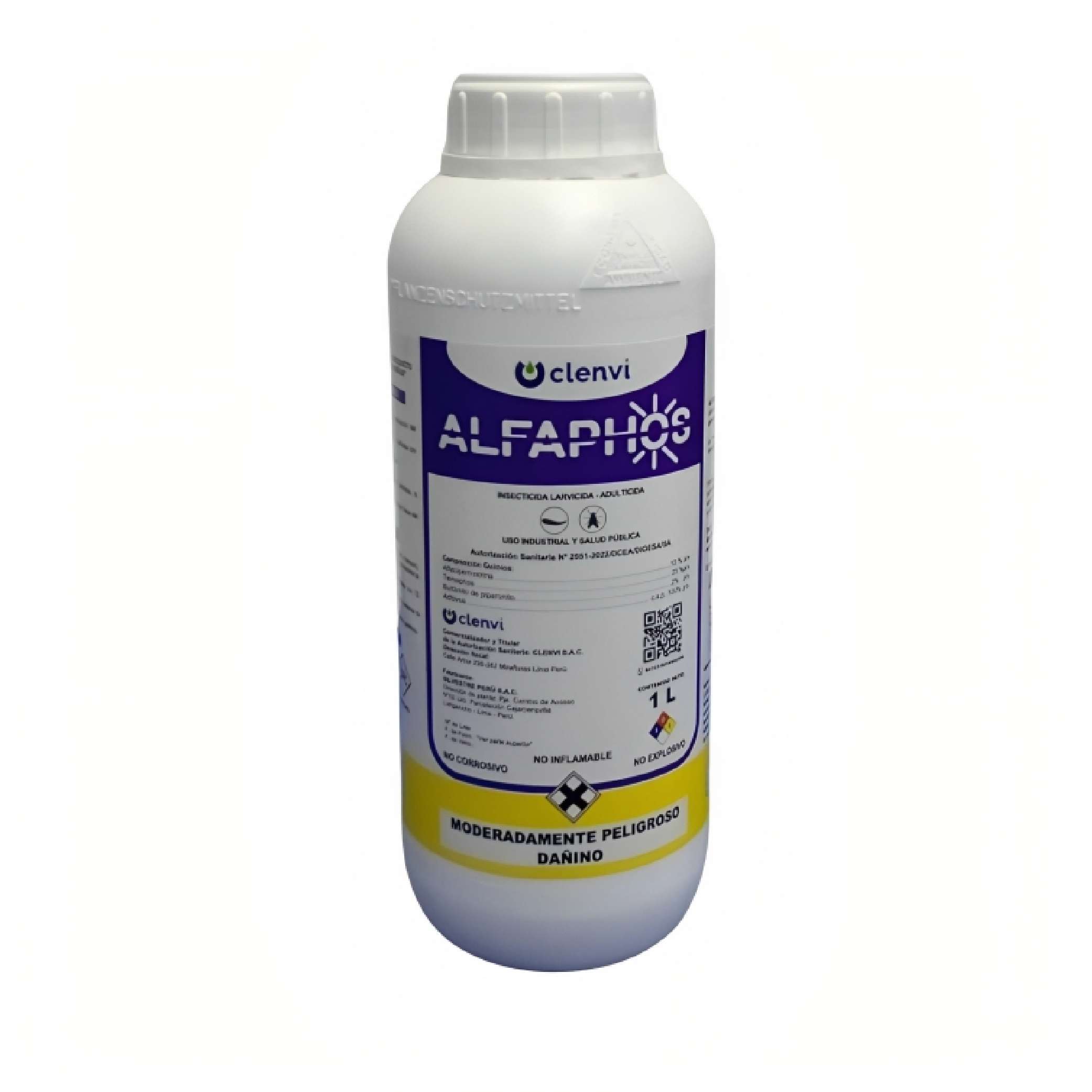 ALFAPHOS es un insecticida con doble efecto de acción; formulado como concentrado emulsionable (CE), a base de Alfacipermetrina piretroide de última generación, temephos organofosforado y sinergizado con BPO; la mezcla de estos ingredientes controla eficientemente tanto los estadios inmaduros (larvas, pupas) como adultos de insectos tratados.